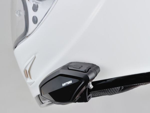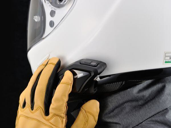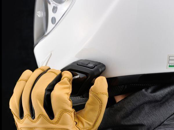 操作ボタンを押さなくてもデバイスやヘルメットを叩くだけで電話の受話、終話音楽の再生、停止等が可能