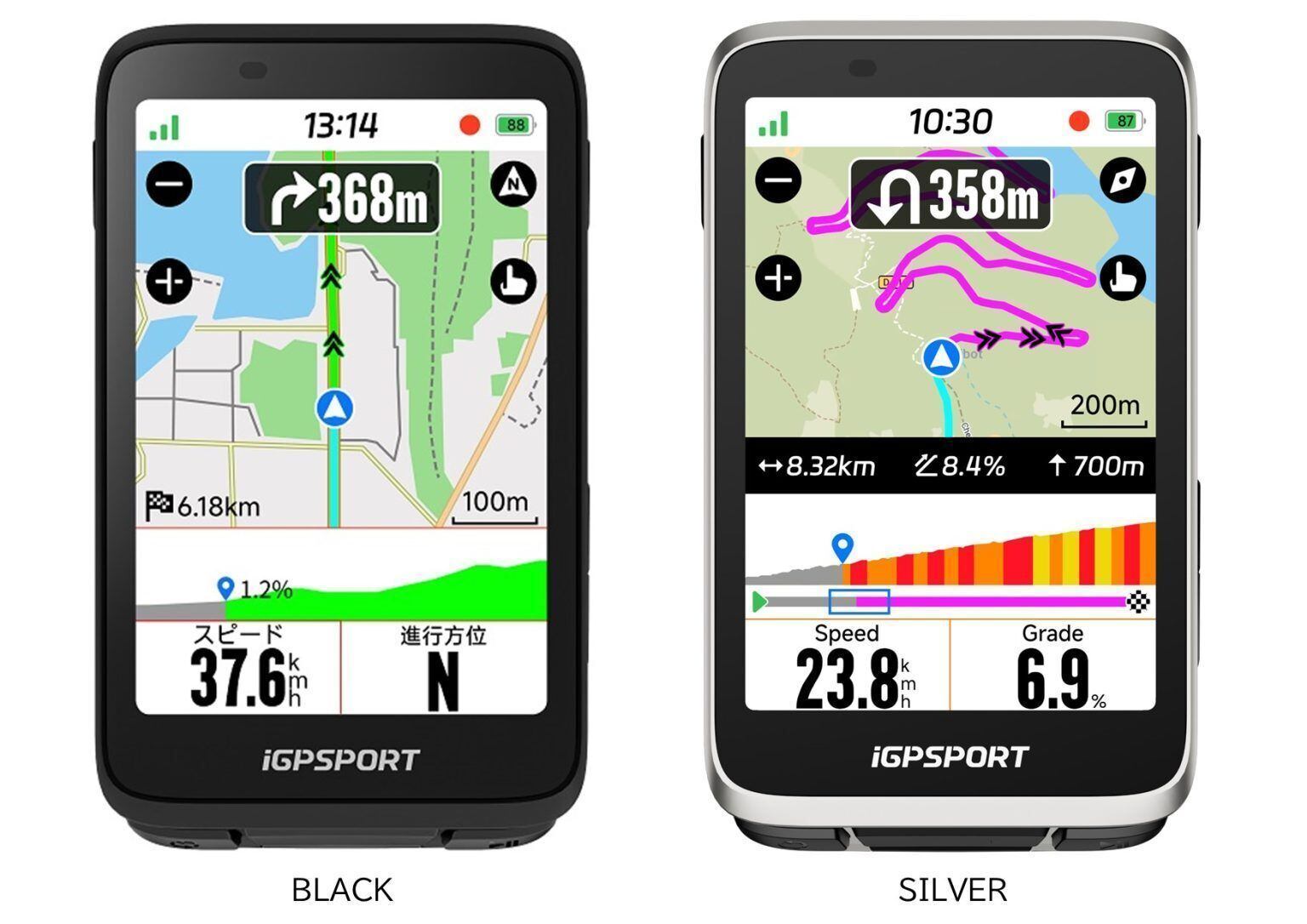 ・接続:速度センサー、ケーデンスセンサー、速度、心拍数、パワーメーター、SHIMANO Di2、Di2コントロール、SRAM eTap、Campagnolo EPS、トレーナー、E-Bike、レーダー、iGPSPORTバイクライト、CORE体温センサー