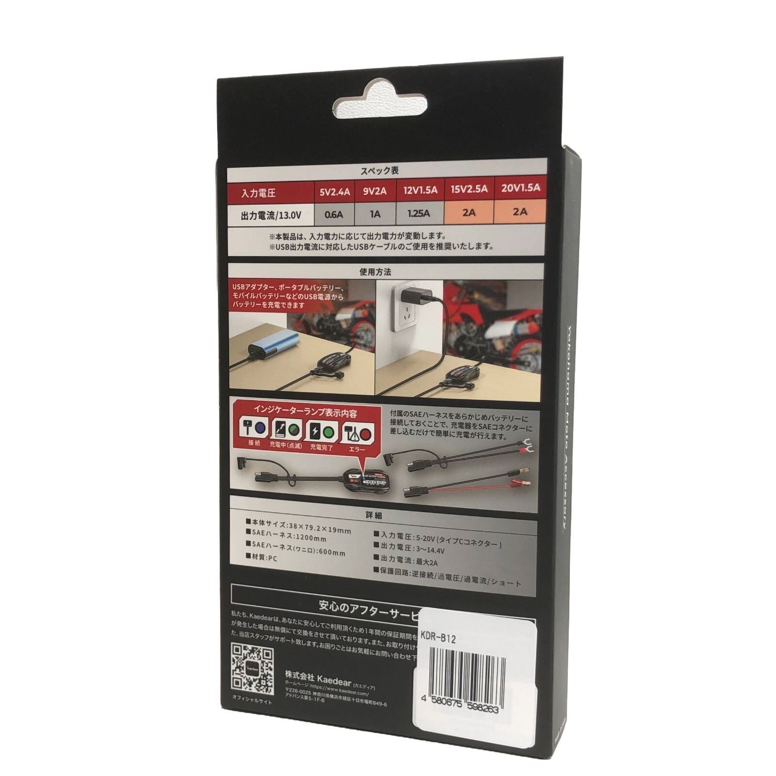 カエディア(Kaedear)KDR-B12 バイク バッテリー充電器 USB 入力 12V バッテリー チャージャー 充電器/スマートバッテリーチャージャー