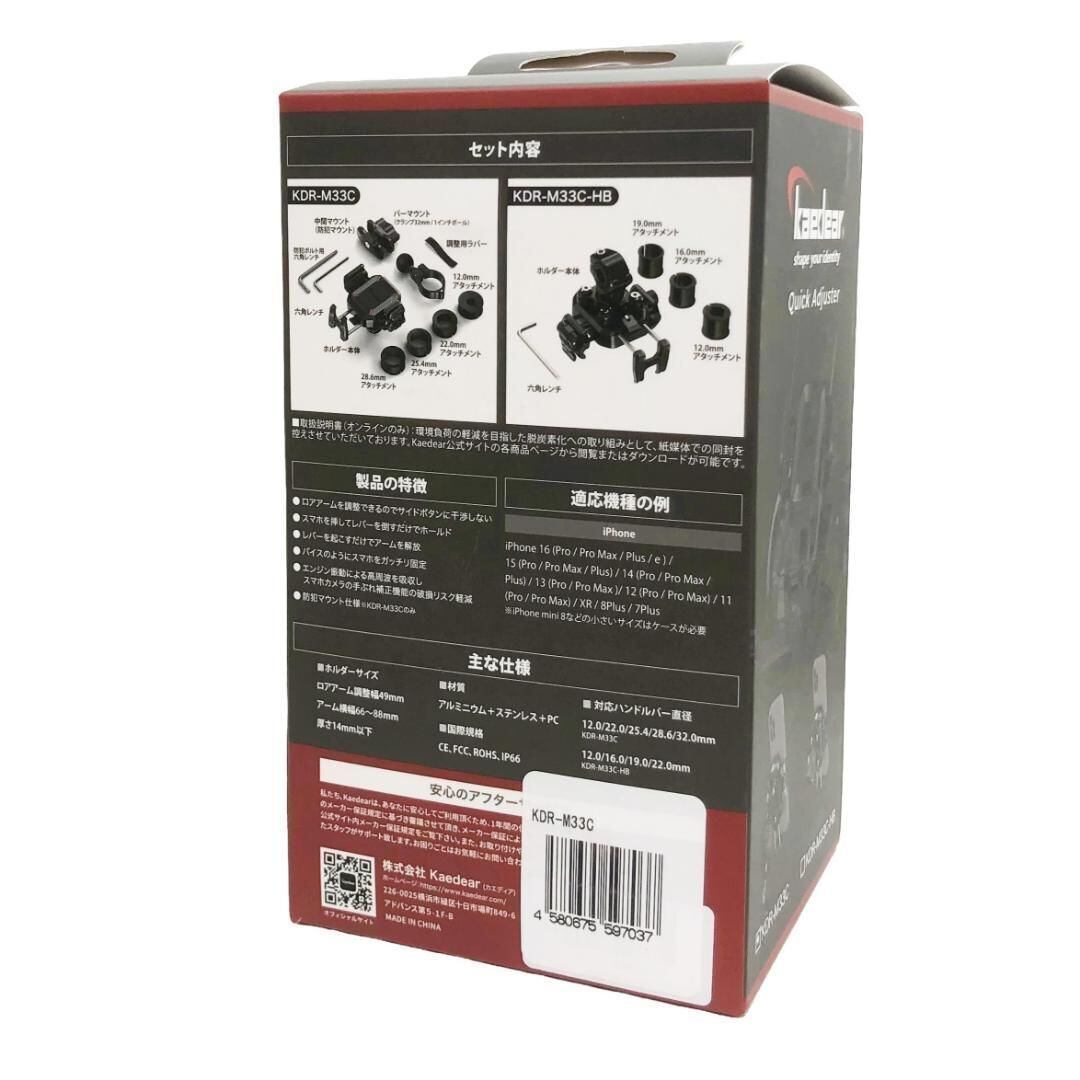 カエディア(Kaedear)KDR-M33C(ブラック)バイク用スマホホルダー 携帯ホルダー 振動吸収【新品・未開封】